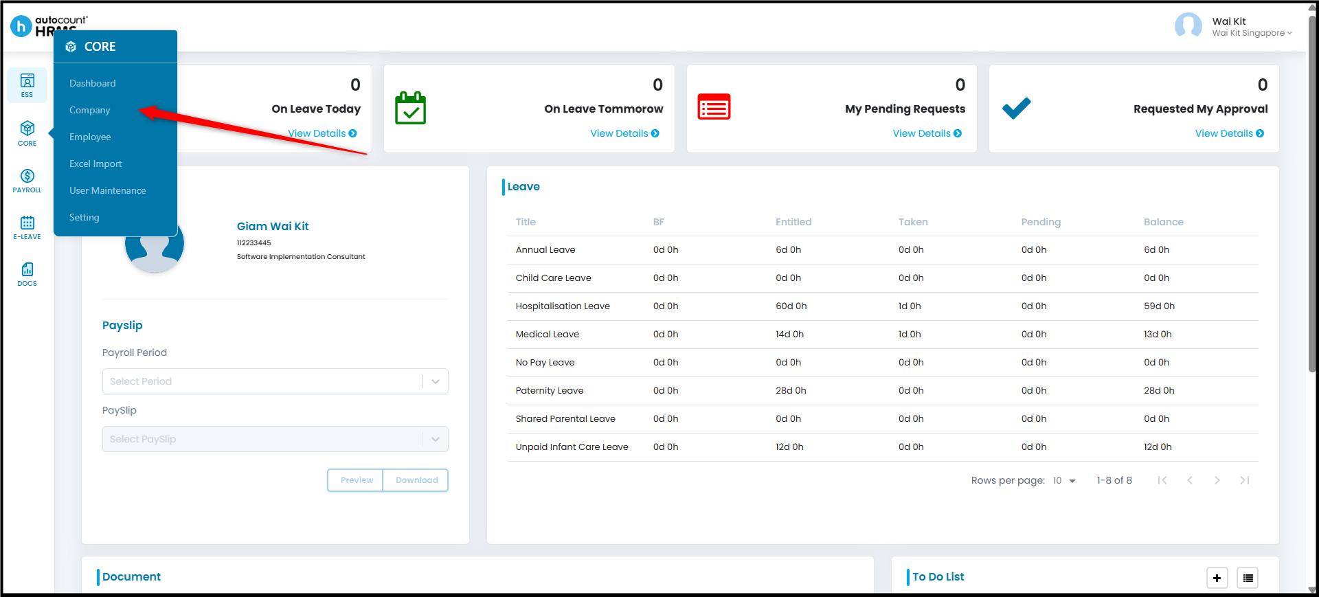 - Go to Core > Company.