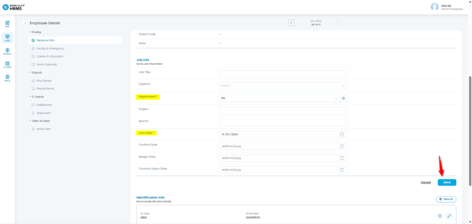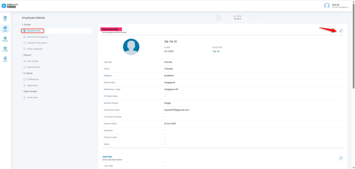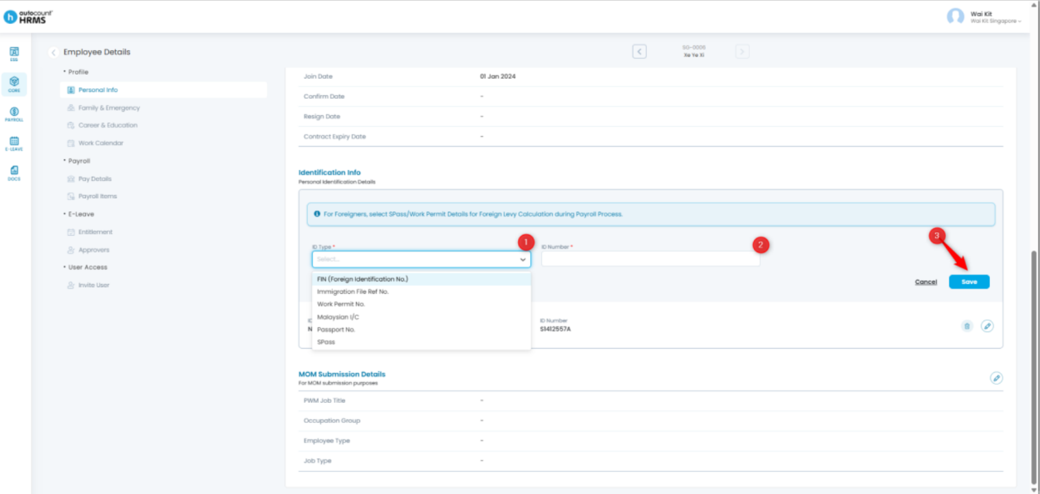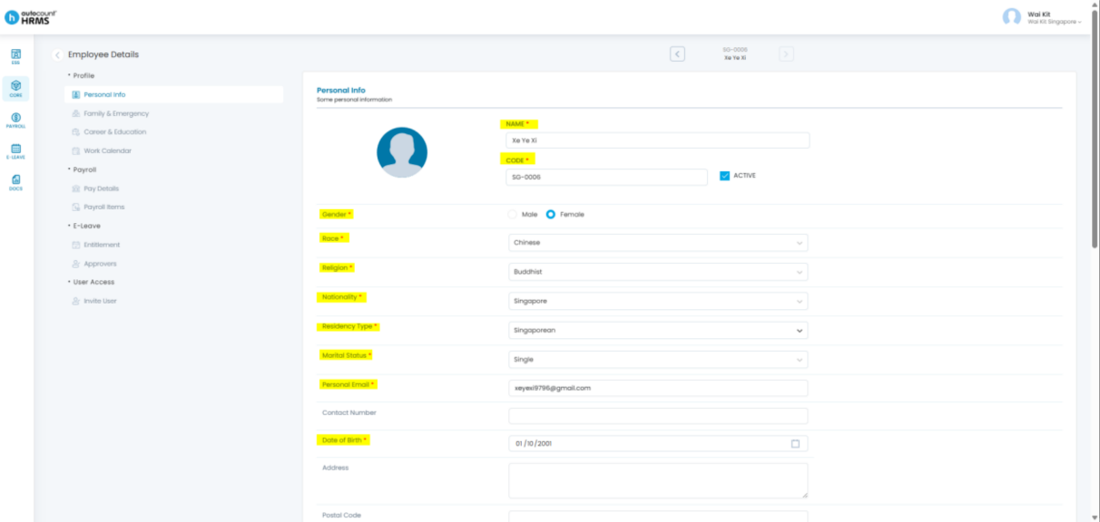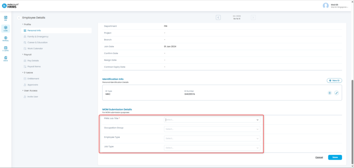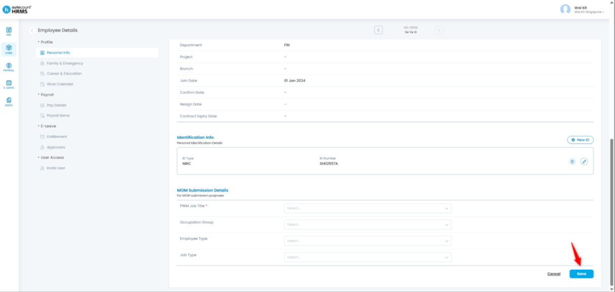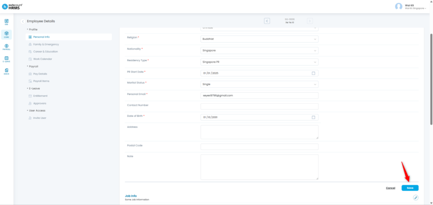Keeping your employees’ personal information up to date in HRMS is essential and crucial as it might affect foreign levy calculations, leave entitlements, and MOM (Ministry of Manpower) submissions.