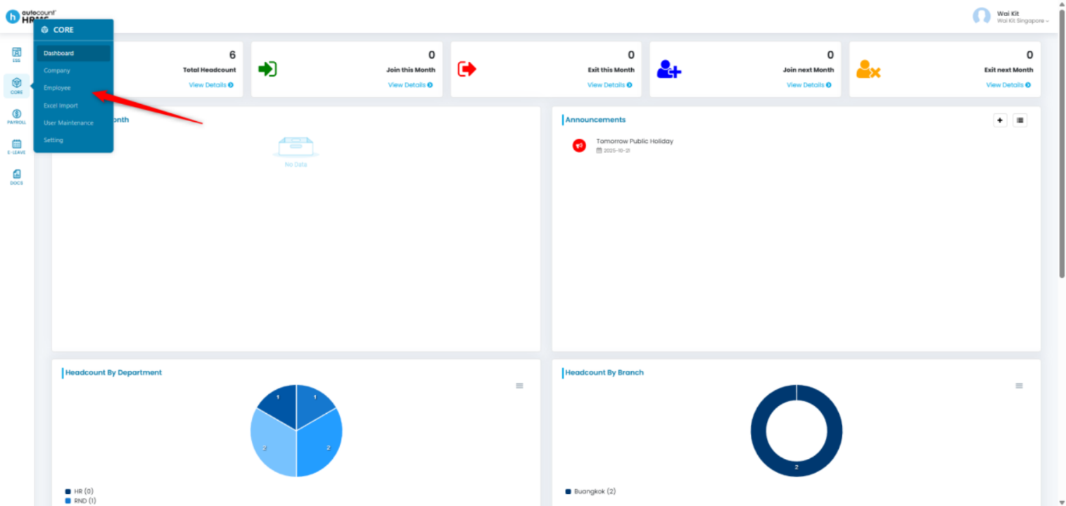1. Go to Core > Employee.