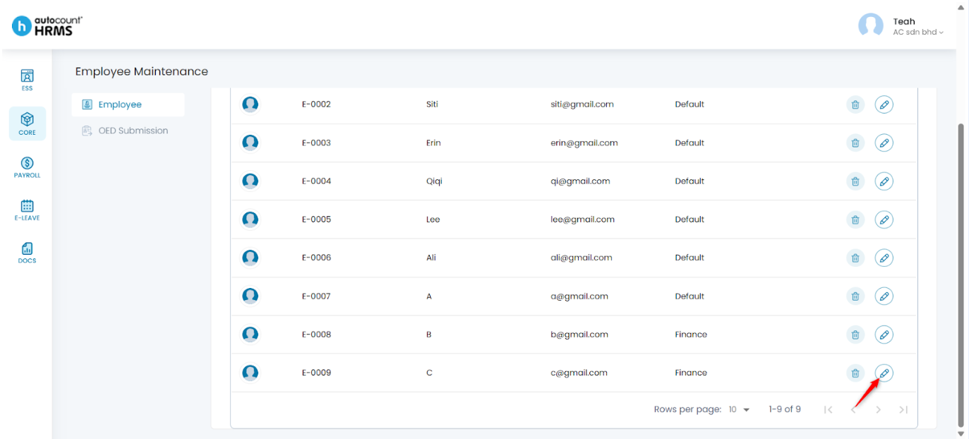Locate the employee you want to update and click the pencil icon beside the employee’s name.