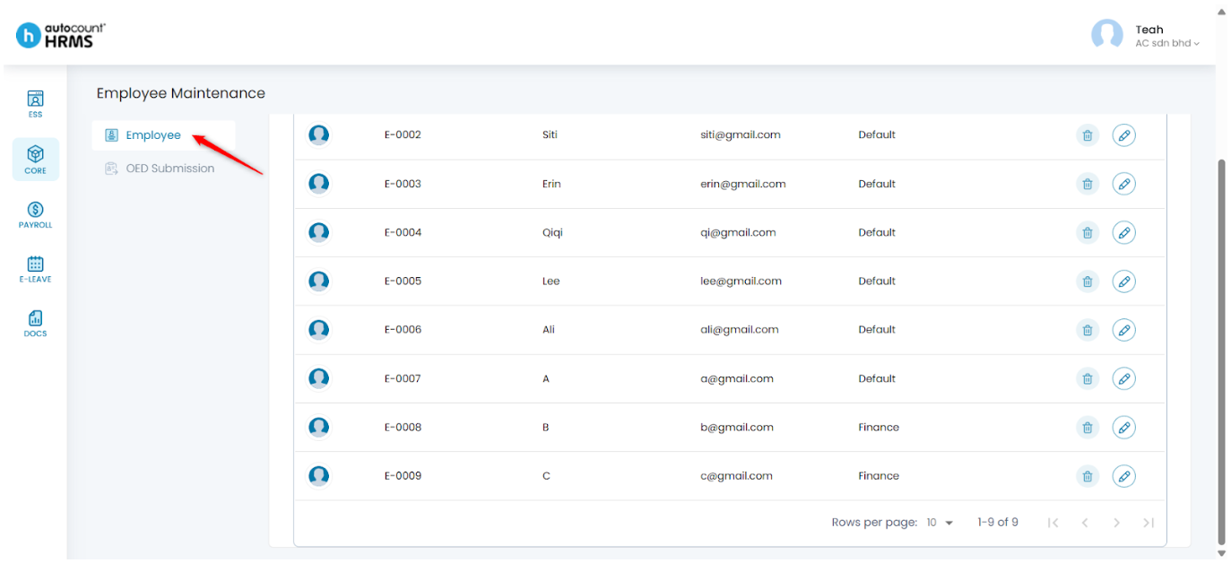- Go to Core > Employee.