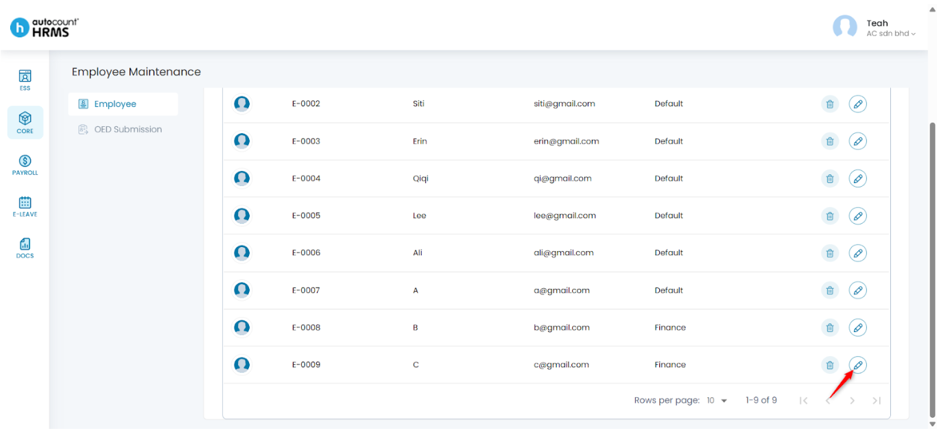 3. Locate the employee you want to update and click the pencil icon beside the employee’s name.