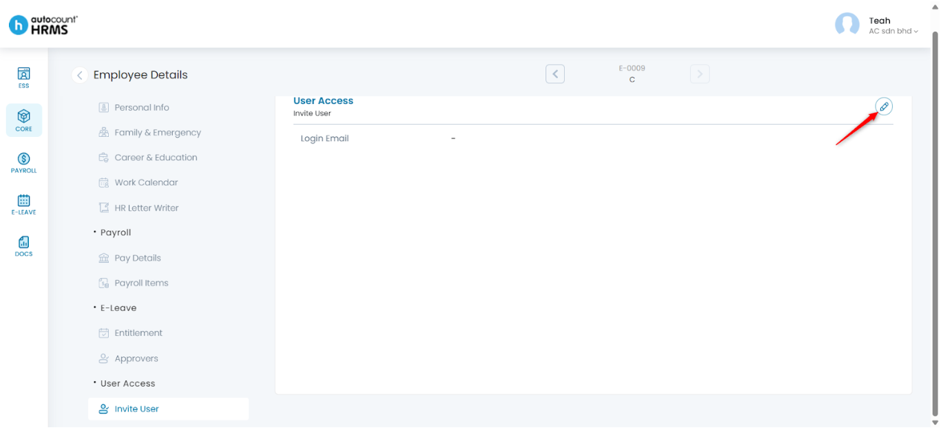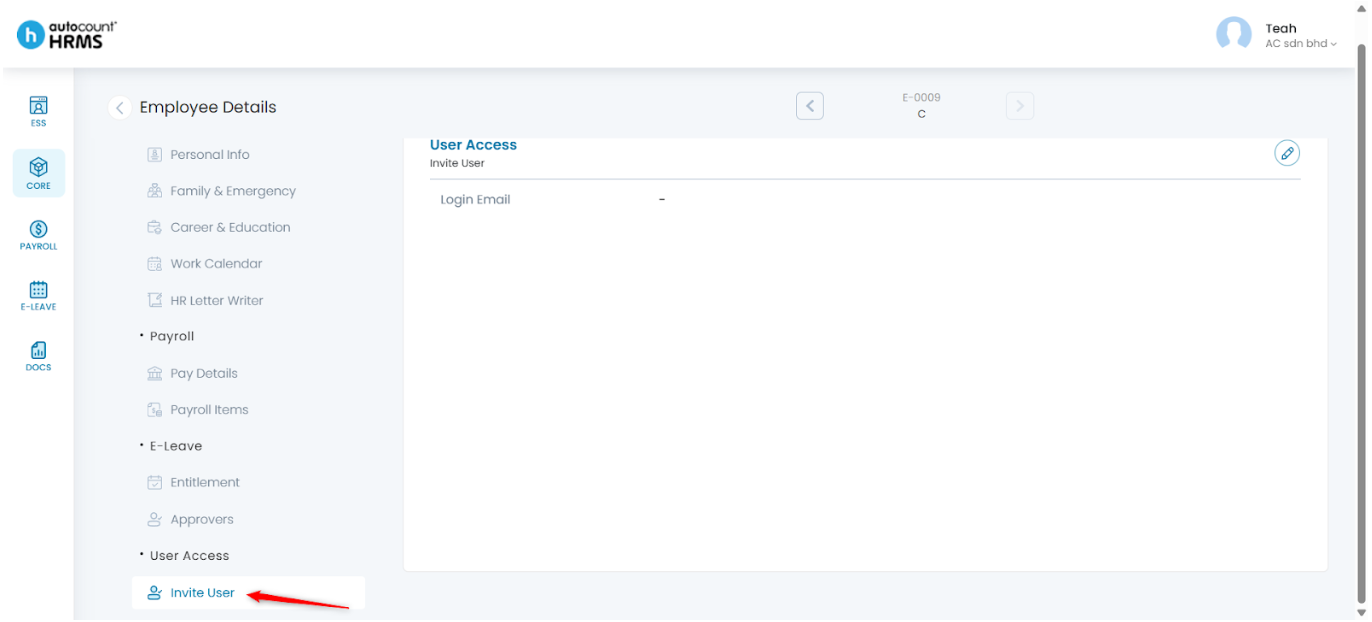 4. Under Employee Details, select User Access.