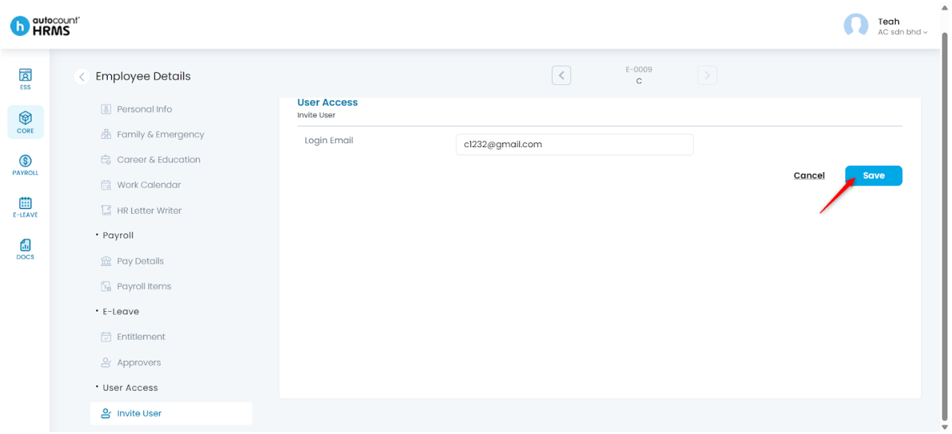 8. The employee is now able to login to HRMS using the registered email to access ESS.
